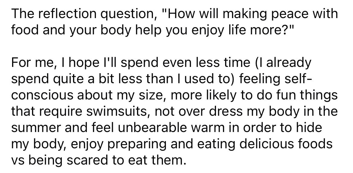 Because through all my studying, exams, experimenting, and disordered eating (yup, it happens to dietitians too!), the one thing that gave me freedom from obsessing over food was embracing a non-diet way of life.